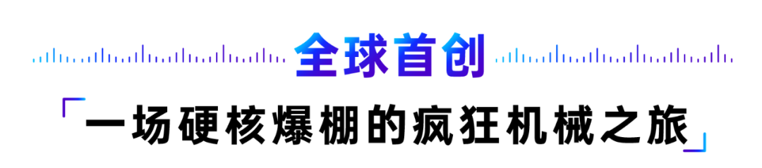 一座高20m、宽41m可“变形”的巨型“机器人”造型剧场,一部全球首创空前高燃的特技秀,一场硬核爆棚的疯狂机械之旅,将为游客开创前所未有的沉浸式近距离观演的刺激体验感。